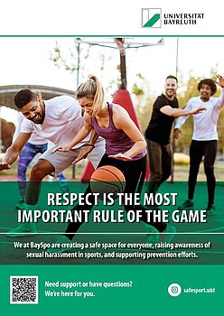 BaySpo pursues a consistent prevention strategy against sexual harassment and violence across all areas of its work. In teaching, competition regulations are critically examined, personal boundaries are discussed, and risk factors are highlighted. The topic is embedded in the curriculum of all relevant sports study programmes and addressed at the beginning of each course. Contact persons are made visible.