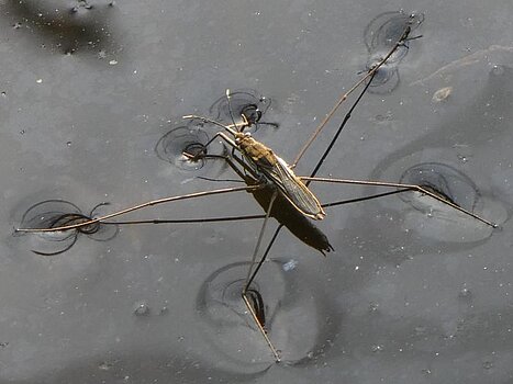 Most people are familiar with the tiny insects that walk on the surface of lakes, ponds, rivers, and even the open sea. A thin layer of fat on the hairs on their abdomen and legs prevents water striders from sinking. Very few people know that these are actually true bugs. Around 800 species are known worldwide, 12 of them are also found in Germany. Zoologists typically sort the animals into species, genera, or subfamilies based on morphological characteristics. To reconstruct the evolutionary relationships within the water strider family, how closely related individual subfamilies or genera are to each other, and when and where they originated in the family tree, other methods are needed—by looking into the DNA.