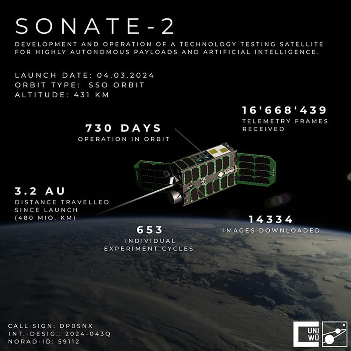 On 4 March 2024, the SONATE-2 nanosatellite developed at Julius-Maximilians-Universität Würzburg (JMU) was launched into space. On the two-year anniversary, the team at the Professorship for Space Technology led by Professor Hakan Kayal is now drawing a thoroughly positive balance.