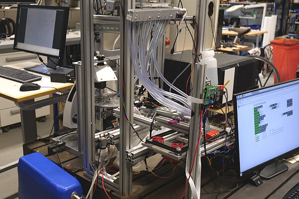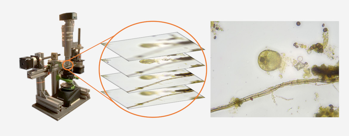 Ketterl and his team designed a fully automated workflow to capture and analyze soil samples with remarkable precision: First, an autonomous robot drives over the study area and takes soil samples at predefined positions. These are then transferred to a base station, where the samples are automatically sieved. After that, a granule is mixed with water to form a defined suspension, applied to a microscope slide, and automatically passed on to the microscope where the sample is analysed.